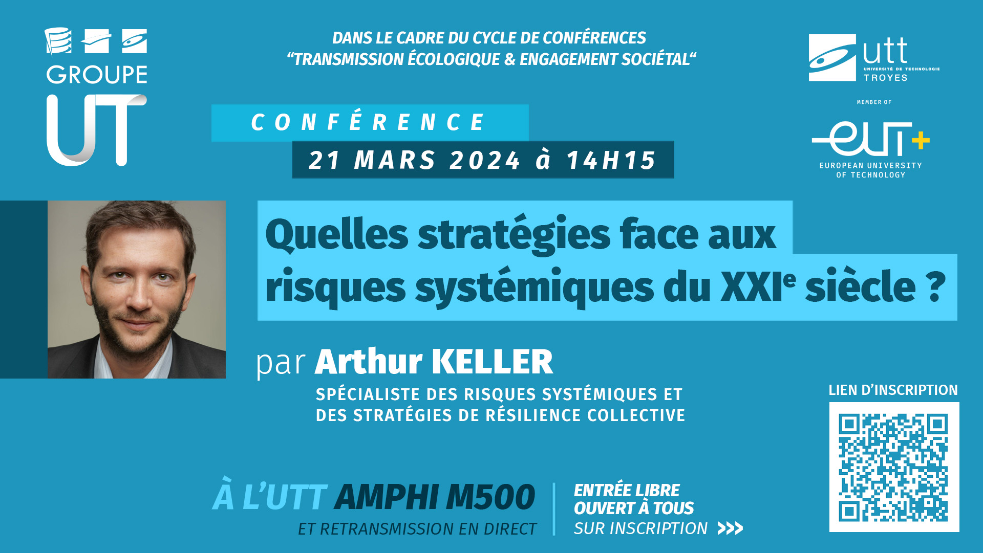 Conférence d’Arthur Keller : "Quelles stratégies face aux risques systémiques du XXIe siècle ?" - Jeudi 21 mars 2024 à 14h15 à l’UTT