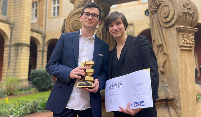 Parmi plus de 200 candidatures, Eloïse et Romain ont eu la chance de figurer parmi les 10 lauréats de cette 7e édition, ce qui leur a permis d'assister à la cérémonie de remise des prix samedi 16 mars 2024, à Metz, en compagnie d'Émilie Colas, responsable Valorisation Parcours Etudiants.
