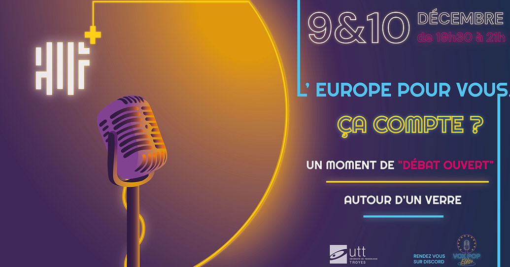 Rendez-vous mercredi 9 et jeudi 10 décembre (après-midi) pour faire entendre votre voix et imaginer ensemble l’université technologique de demain pour l’événement Vox-Pop - Parlons Europe, Parlons EUt+